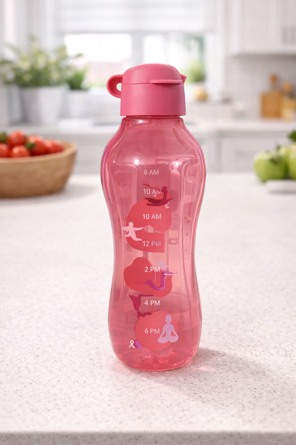 - Design: Time markers (8 AM to 8 PM) help track daily hydration goals